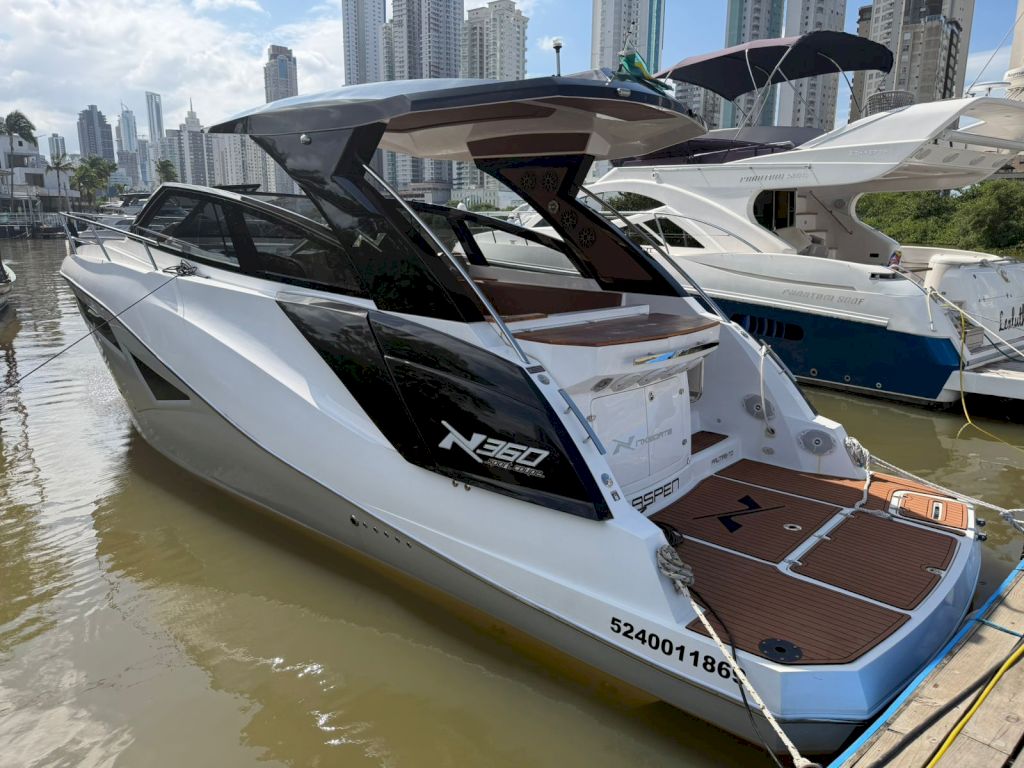 A NX360 SPORT COUPÉ está entre os maiores lançamentos do mercado náutico nos últimos anos, sendo responsável por mudar os rumos da náutica no Brasil. Com sua expressiva linguagem de design, esportiva e elegante, a NX360 SPORT COUPÉ se destaca por apresentar superioridade em tudo que existe na sua categoria. Desde a sua proa, que abriga um amplo solarium king size, passando pelo elegante teto rígido, até sua popa com a distinta entrada de ar e sua inigualável área gourmet. Não há como negar: a Lancha NX 360 SPORT COUPÉ é simplesmente inigualável em todos os sentidos.