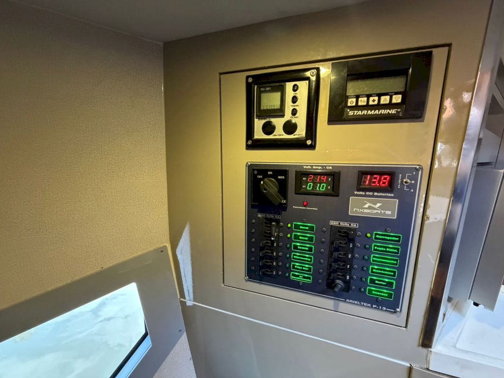 Possui: Rabeta bravo tree, Gerador de energia, Ar condicionado, Fogão, Geleira, Microondas,Churrasqueira, tv, 40 mil em som e Luzes subaquáticas.