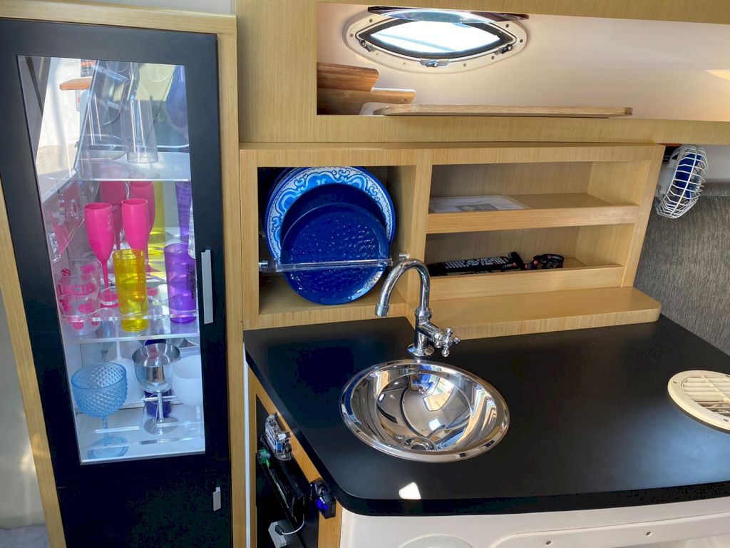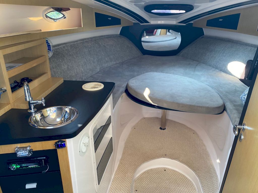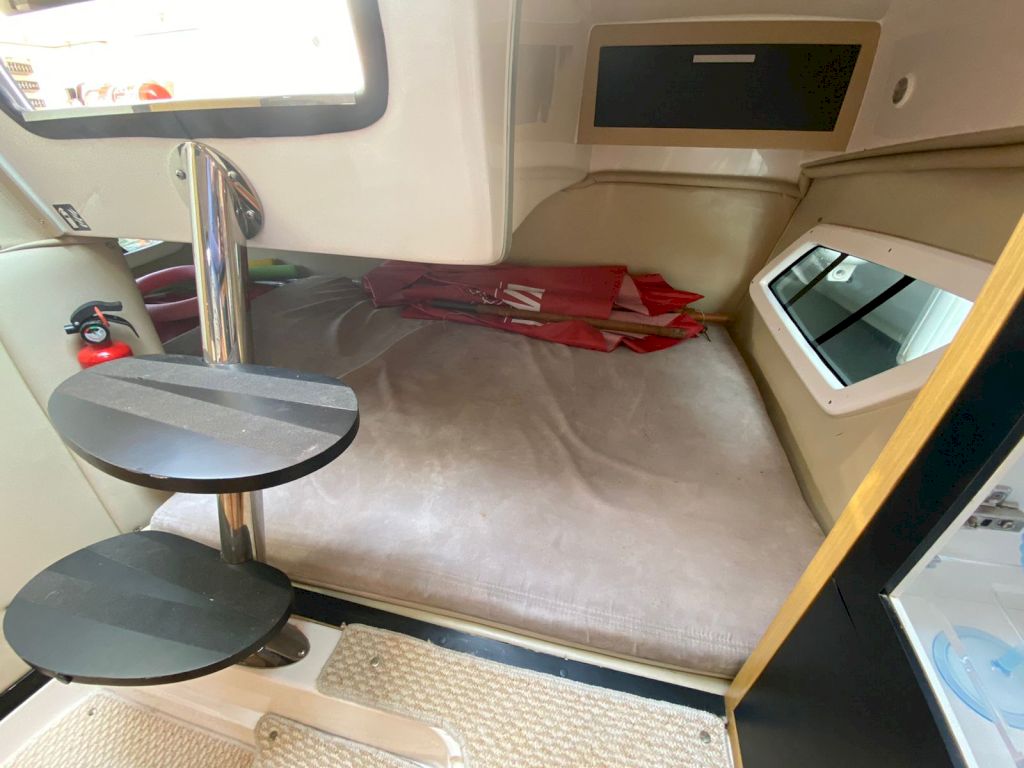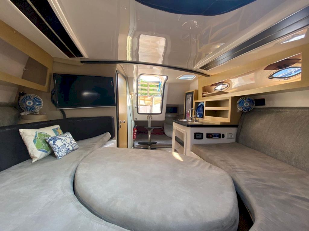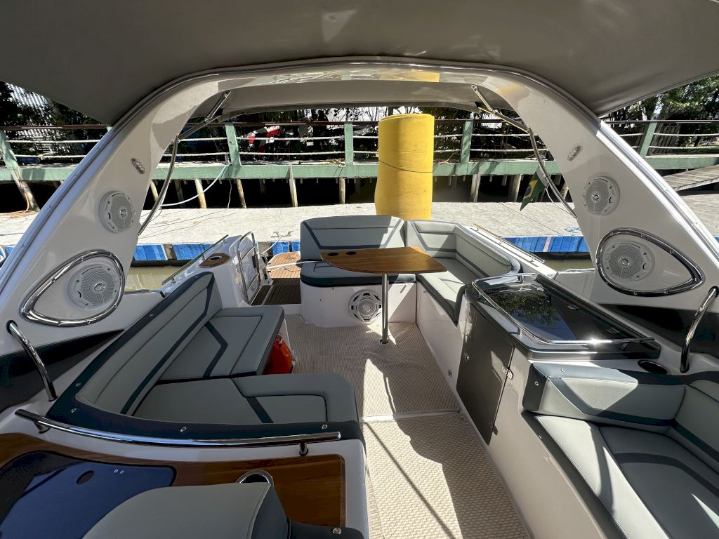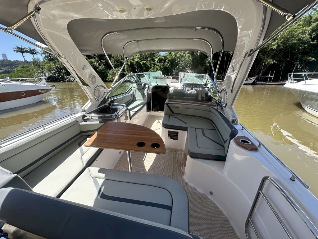 Itens opcionais já instalados: Bússola, Buzina, Colchão de Proa,Ducha na Plataforma de Popa, Escada 4 Degraus na Plataforma,- Radio VHF com antena e suporte, Guincho elétrico de ancora, Direção Hidráulica, Isolamento acústico da casa de máquinas, Flaps Hidráulico, Luzes de Cabine, Luzes de Navegação , Tomada 12V, Som , Fechamento , Marcador de combustível, Mesa de centro escamoteável, WC Elétrico, Churrasqueira,GPS Garmin 521S, Farol de Proa, Alarme de Inundação, Sistema de Extinção de Incêndio, Rabeta Bravo, T omada de Cais, Ar condicionado , Plataforma de popa estendida,- Suporte para jet ski,Jet Ski sea doo spark 60Hp ano 2013 com escada e bagageiro, Porta defensas, Proteção de ancora, Carreta de encalhe, TV 32, Ventilador 12V, Tapete, 2 Camas de casal , Painel Elétrico , Pára-brisa, Pia , Targa, Toalete Fechado, Kit salvatagem completo, Defensas, Ducha Interna, Bomba de água doce, Bomba de Porão, 2 Motores Mercruizer 220HPGasolina .