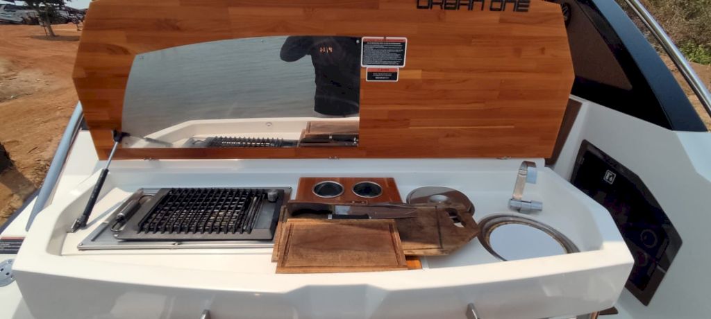 Possui: Rabeta bravo tree, Gerador de energia, Ar condicionado, Fogão, Geleira, Microondas,Churrasqueira, tv, 40 mil em som e Luzes subaquáticas.