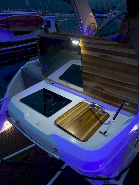 ⁃ Espaço gourmet na popa instalado pela própria Fibrafort